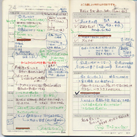 | Q A5サイズを使用していますが、打ち合わせやMTなどがない時は記入することがなく、デイリーシートの裏面を 活用できていません。みなさんはどのように活用されているんですか? A-1 簡単なメモなども裏面に記録していくことで、かなり空白はなくなります。情報メモなどの欄に足りない時も裏面は活用しています。 A-2 書類などを折って貼ったり、雑誌などで気になるものを見つけたら切り抜いて貼ったりすることで、裏面も充実します。 また、別ファイルにとじたりすると紛失することがありますが、その心配もありません。用意するのはハサミとノリだけです。 |